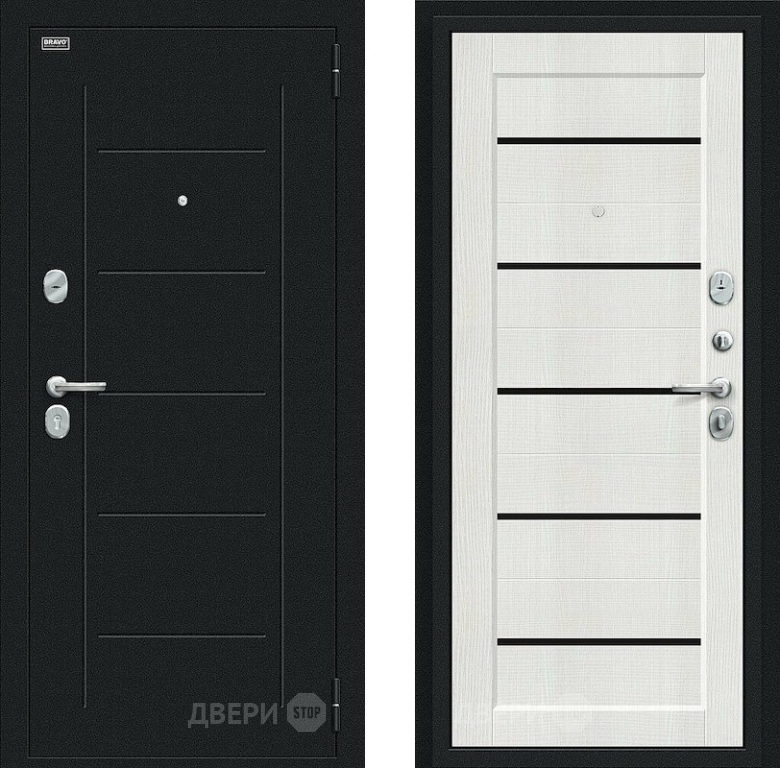 Входная металлическая Дверь Bravo Борн Букле черное/Bianco Veralinga в Троицк 860х2050 мм