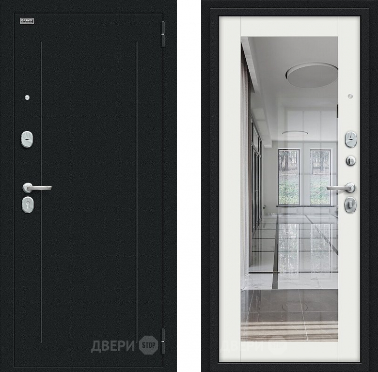 Входная металлическая Дверь Bravo Флэш Букле черное/Bianco Veralinga в Троицк 860х2050 мм