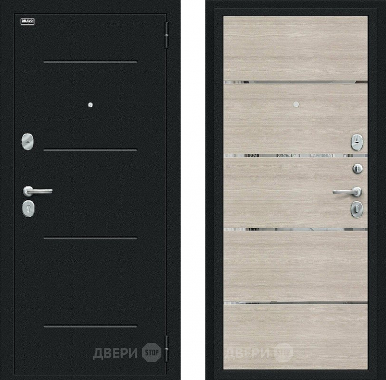 Входная металлическая Дверь Bravo Лайн Букле черное/Cappuccino Veralinga в Троицк 860х2050 мм