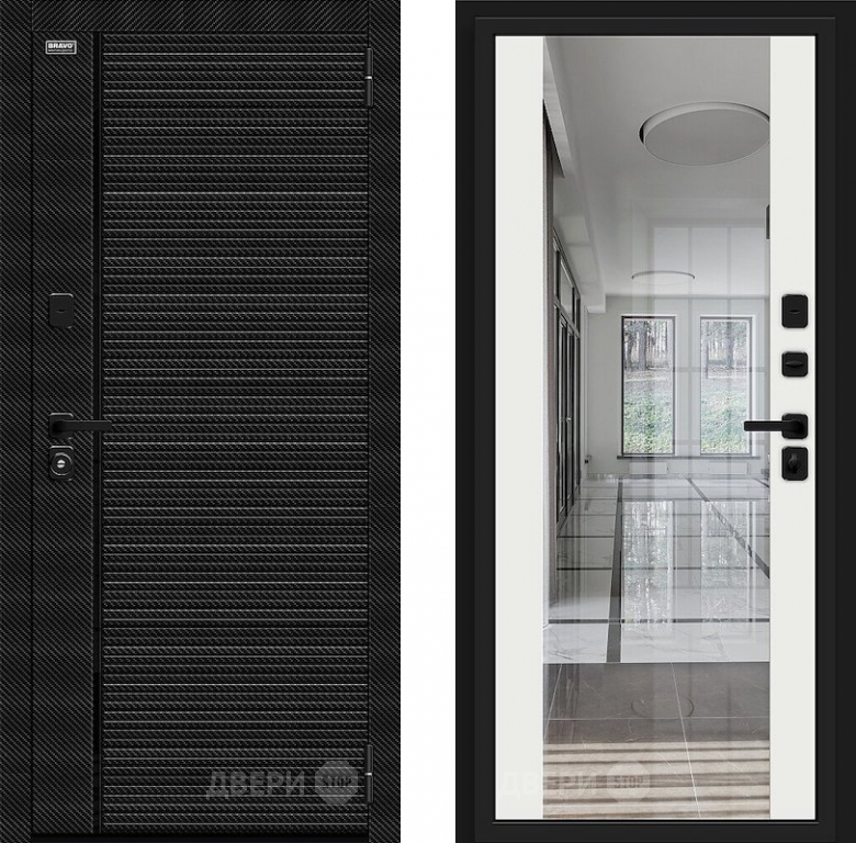 Входная металлическая Дверь Bravo Лайнер-3 Black Carbon/Off-white в Троицк 860х2050 мм