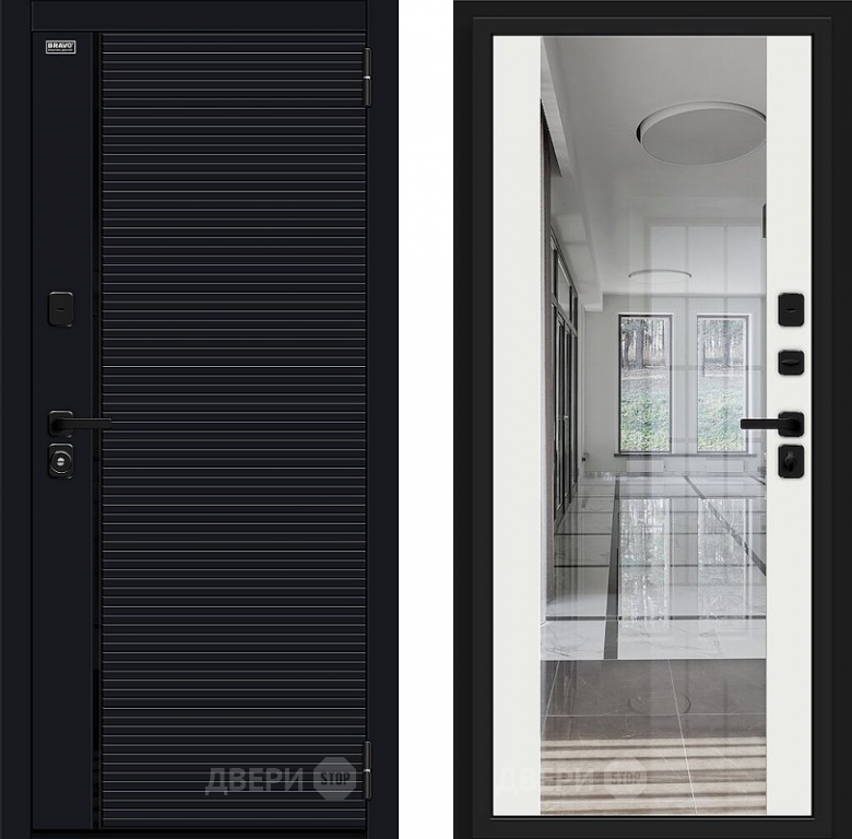 Входная металлическая Дверь Bravo Лайнер-3 Total Black/Off-white в Троицк 860х2050 мм