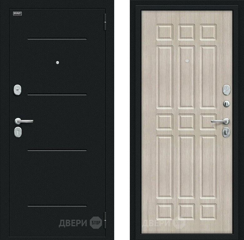Входная металлическая Дверь Bravo Мило Букле черное/Cappuccino Veralinga в Троицк 860х2050 мм