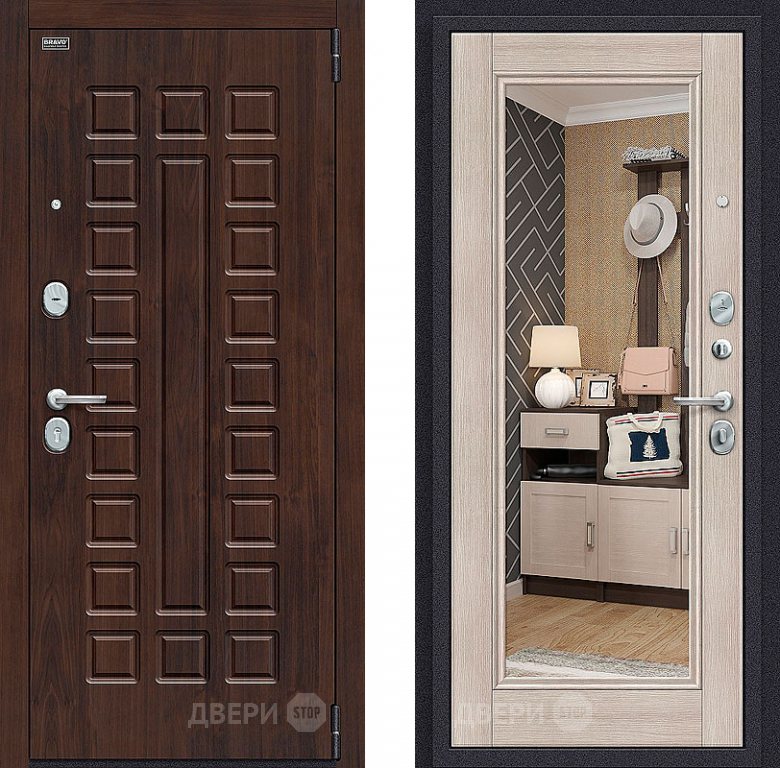 Входная металлическая Дверь Bravo Оптим Урбан с зеркалом Cappuccino Veralinga в Троицк 860х2050 мм