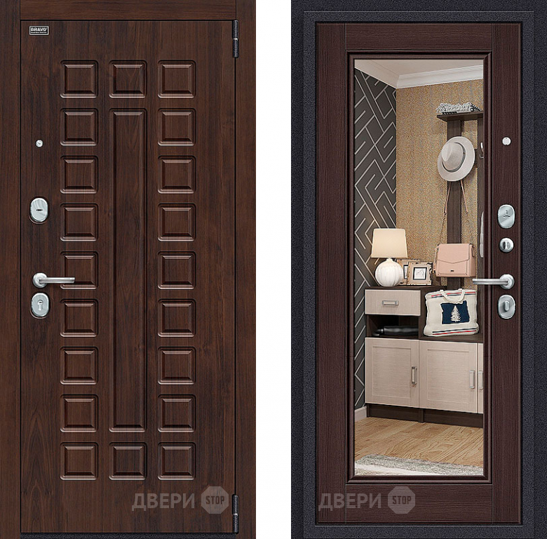 Входная металлическая Дверь Bravo Оптим Урбан с зеркалом Wenge Veralinga в Троицк 860х2050 мм