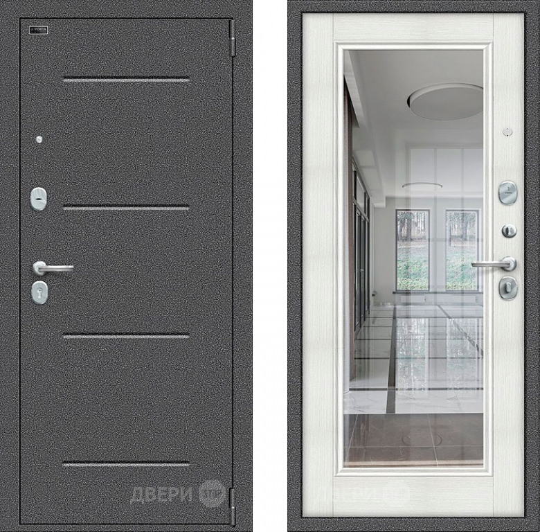 Входная металлическая Дверь Bravo Porta S-2 104/П61 с зеркалом Бьянко в Троицк 860х2050 мм