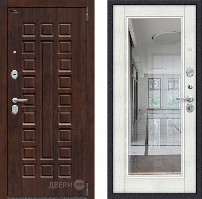 Входная металлическая Дверь Bravo Porta S-3 51/П61 с зеркалом Бьянко в Троицк 860х2050 мм