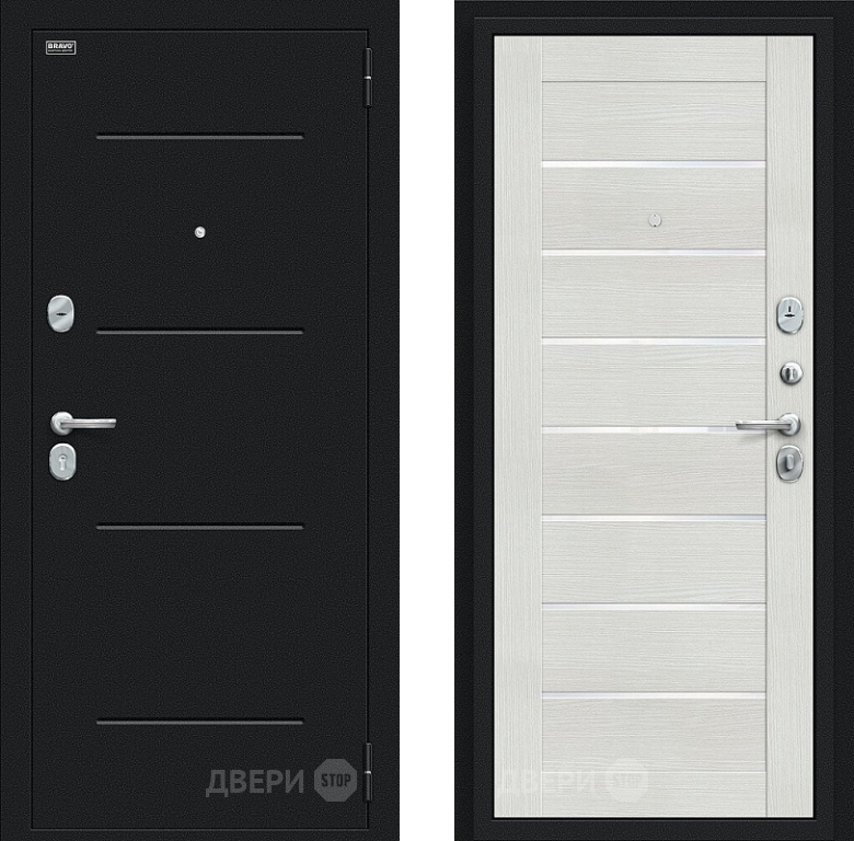 Входная металлическая Дверь Bravo Техно Букле черное/Bianco Veralinga в Троицк 860х2050 мм