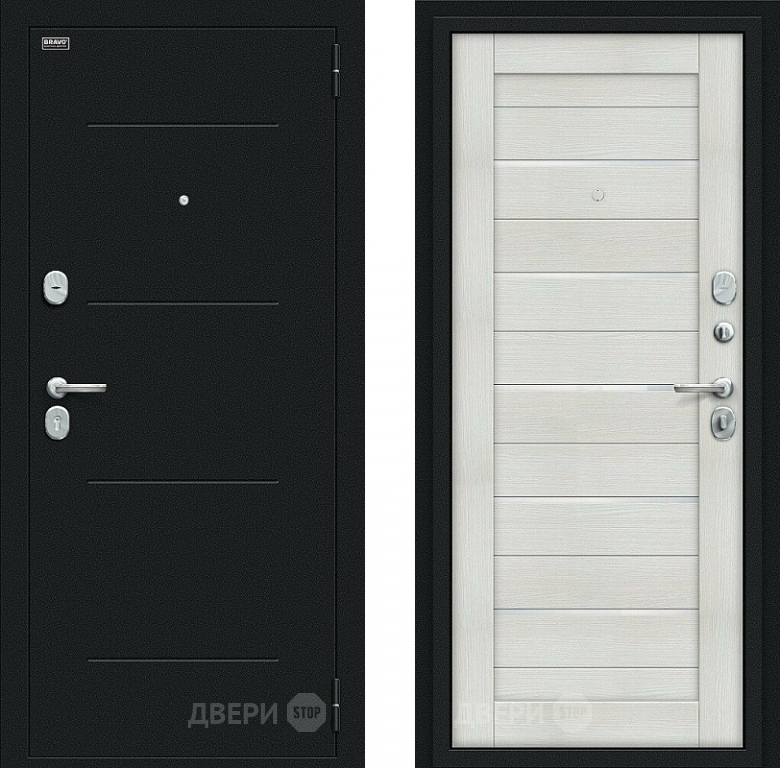 Входная металлическая Дверь Bravo Техно Kale Букле черное/Bianco Veralinga в Троицк 860х2050 мм