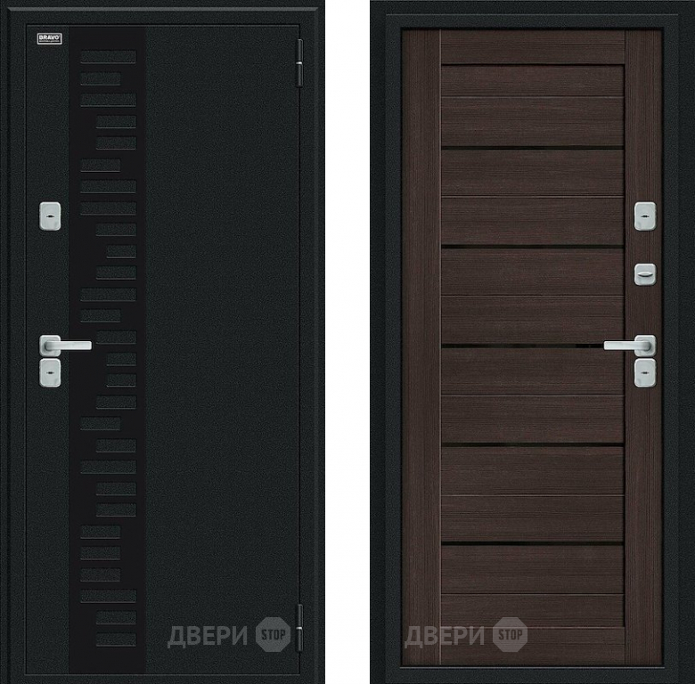 Входная металлическая Дверь Bravo Thermo Техно Декор Букле черное/Wenge Veralinga в Троицк 860х2050 мм