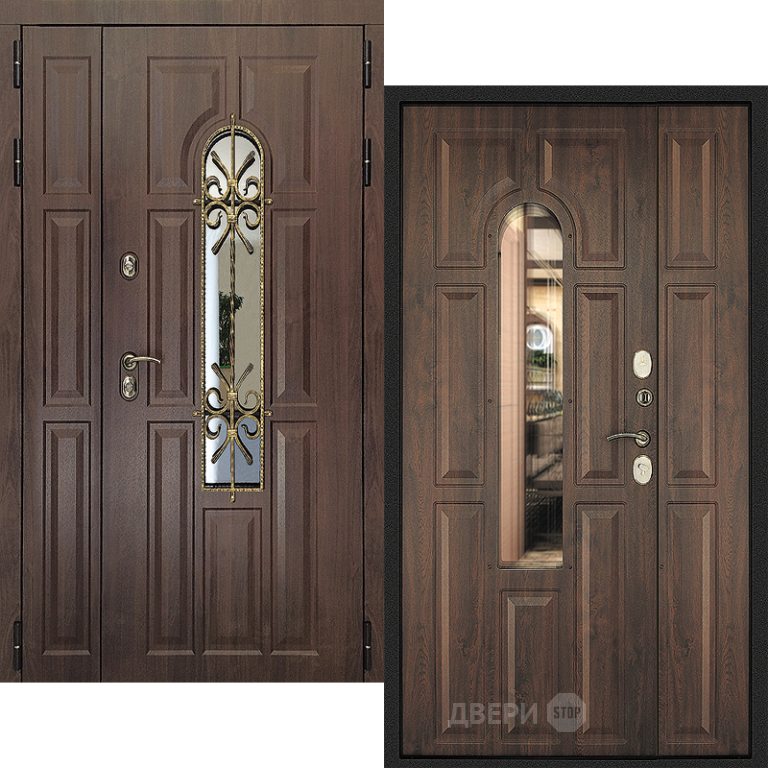 Входная металлическая Дверь Дверной Континент Лион Двустворчатая Темный орех в Троицк 1100, 1200, 1300 * 2200мм
