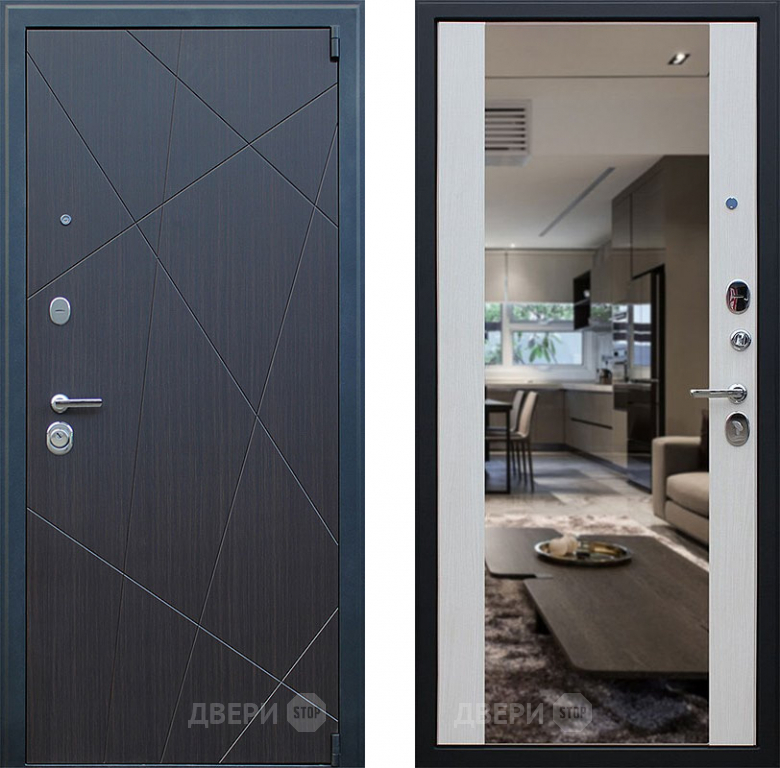 Входная металлическая Дверь АСД Вектор с зеркалом Лиственница белая в Троицк 860х2050 мм
