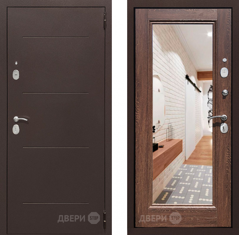 Входная металлическая Дверь Престиж 100 с зеркалом Медь/Дуб филадельфия коньяк в Троицк 860х2050 мм