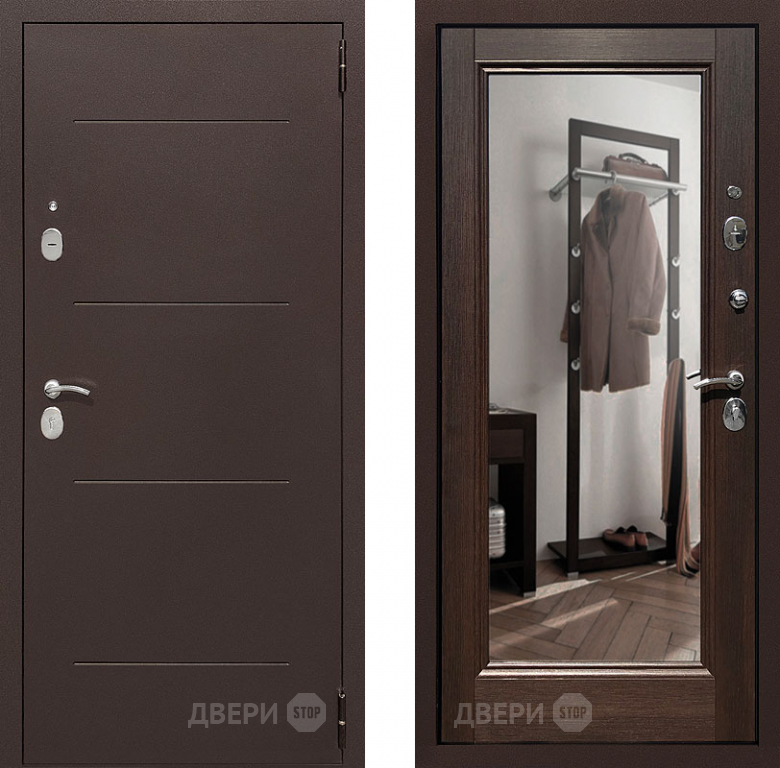 Входная металлическая Дверь Престиж 100 с зеркалом Медь/Венге в Троицк 860х2050 мм