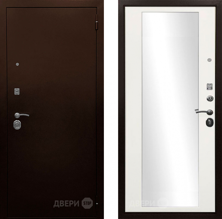 Входная металлическая Дверь Ратибор Рим 3К зеркало Белый матовый в Троицк 860х2050 мм
