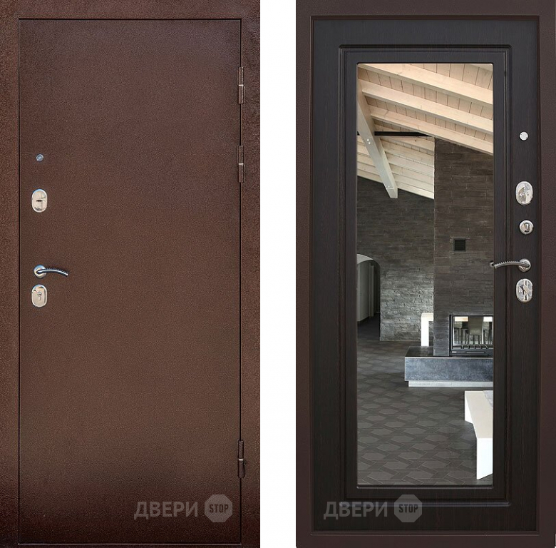 Входная металлическая Дверь Снедо Сити Венге с зеркалом в Троицк 860х2050 мм