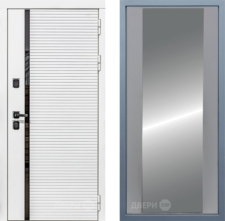 Входная Дверь Дива МХ-45 Белая STR Д-15 Зеркало Силк Маус 860x2050 мм