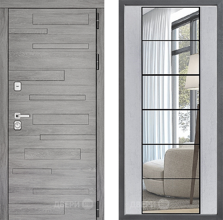 Входная Дверь Дверной континент ДК-10 ФЛЗ-2 Зеркало Бетон светлый 860x2050 мм