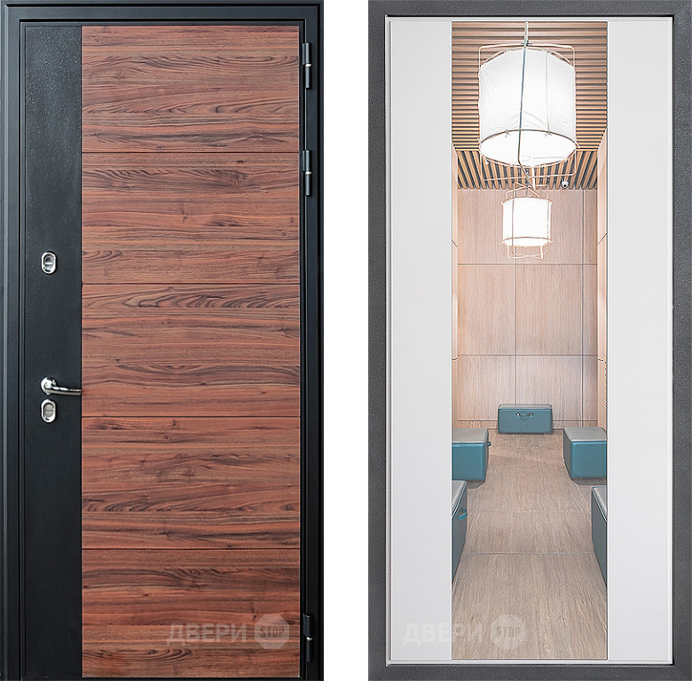 Входная Дверь Дверной континент ДК-15 Красное Дерево ТЕРМО ФЛЗ-1 Зеркало Белый софт 860x2050 мм