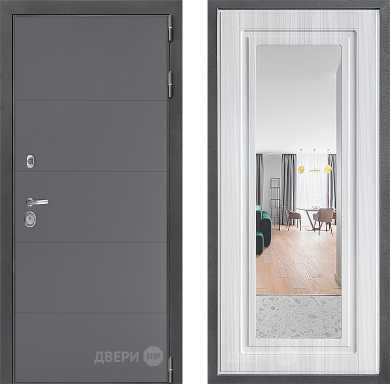 Входная Дверь Дверной континент ДК-3/649 ФЛЗ Зеркало Сандал белый 860x2050 мм