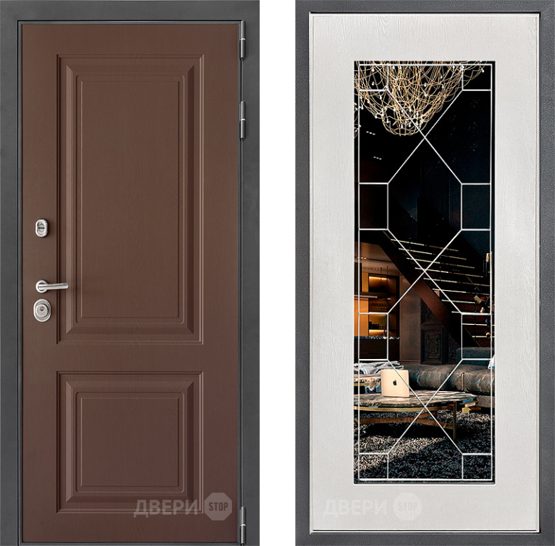 Входная Дверь Дверной континент ДК-3/729 ФЛ-Тиффани Зеркало Белое дерево 860x2050 мм