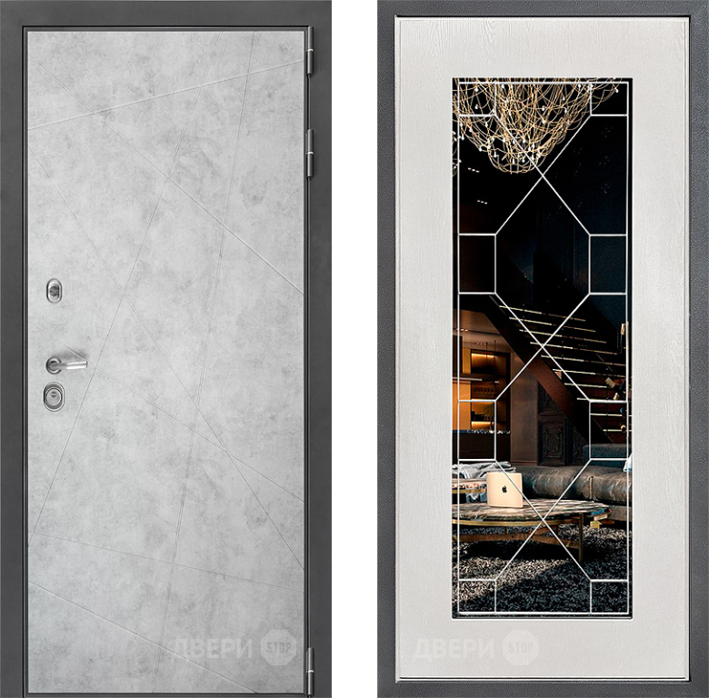 Входная Дверь Дверной континент ДК-3/743 ФЛ-Тиффани Зеркало Белое дерево 860x2050 мм