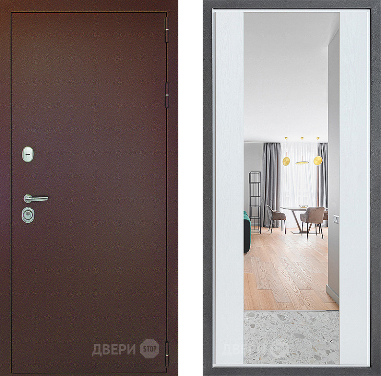 Входная Дверь Дверной континент Рубикон Медь Дизайн ФЛЗ-1 Зеркало Белое дерево 860x2050 мм