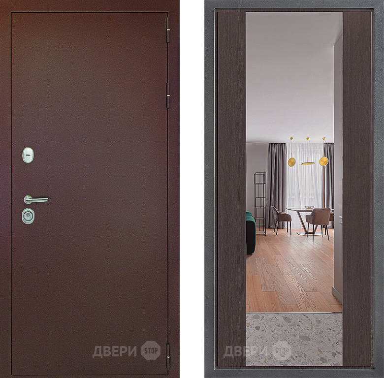 Входная Дверь Дверной континент Рубикон Медь Дизайн ФЛЗ-1 Зеркало Венге 860x2050 мм