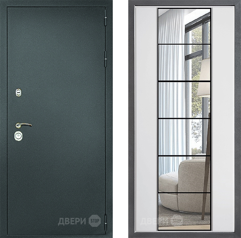 Входная Дверь Дверной континент Рубикон Серебро Дизайн ФЛЗ-2 Зеркало Белый софт 860x2050 мм