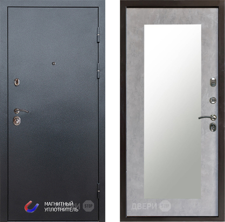 Входная Дверь Престиж Графит Зеркло Пастораль Бетон светлый 860x2050 мм