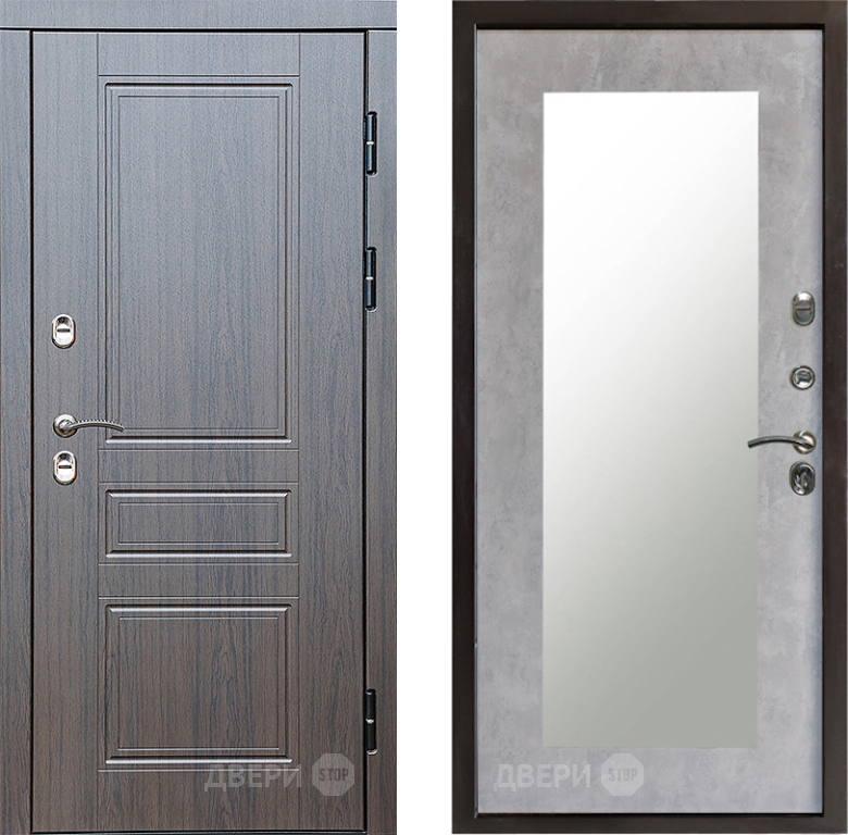 Входная Дверь Престиж TERMO с терморазрывом Классика Зеркало пастораль Бетон светлый 860x2050 мм