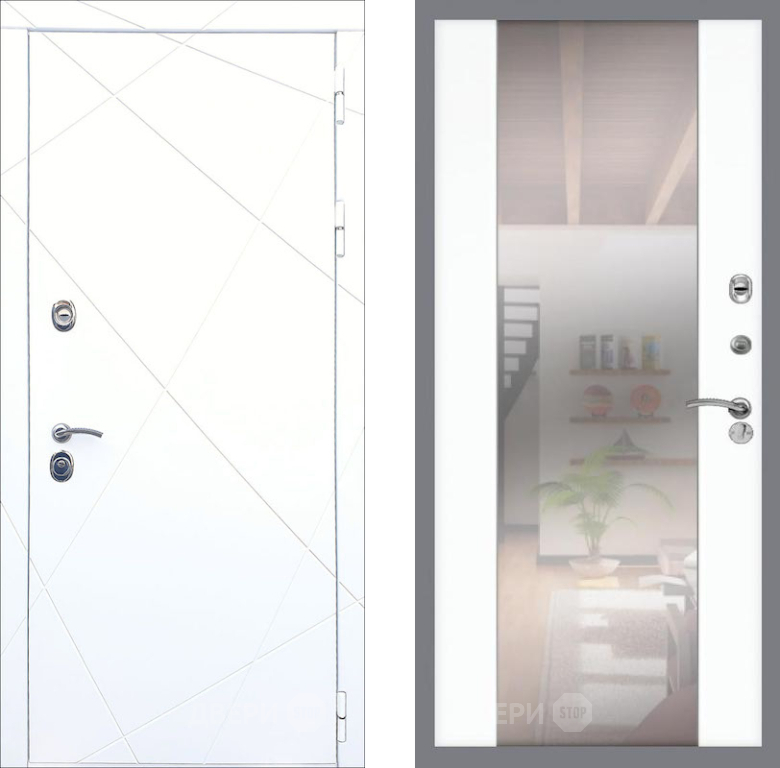 Входная Дверь Рекс (REX) 13 Силк Сноу СБ-16 Зеркало Силк Сноу 860x2050 мм