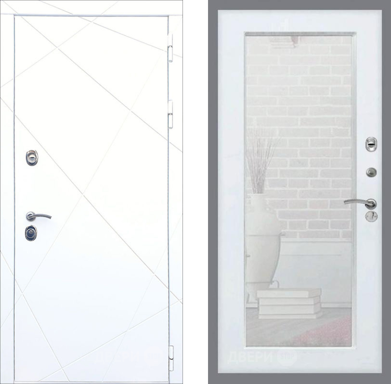 Входная Дверь Рекс (REX) 13 Силк Сноу Зеркало Пастораль Силк Сноу 860x2050 мм