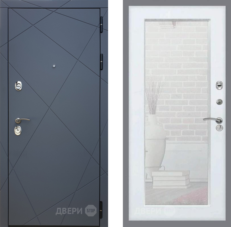 Входная Дверь Рекс (REX) 13 Силк Титан Зеркало Пастораль Белый ясень 960x2050 мм