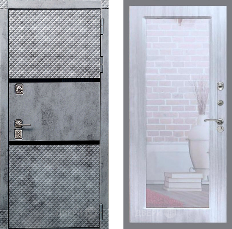 Входная Дверь Рекс (REX) 15 Бетон Темный Зеркало Пастораль Сандал белый 860x2050 мм