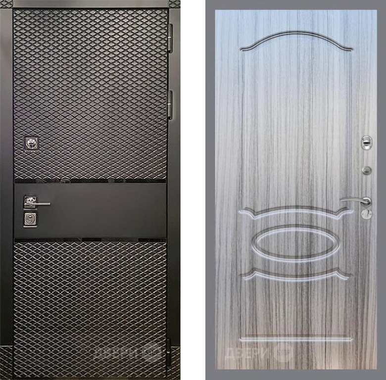 Входная Дверь Рекс (REX) 15 Черный Кварц FL-128 Сандал грей 860x2050 мм