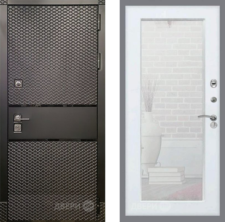 Входная Дверь Рекс (REX) 15 Черный Кварц Зеркало Пастораль Силк Сноу 860x2050 мм