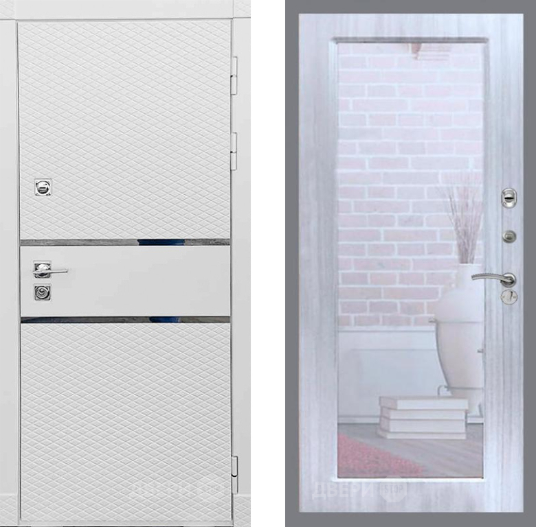Входная Дверь Рекс (REX) 15 Силк Сноу Зеркало Пастораль Сандал белый 960x2050 мм