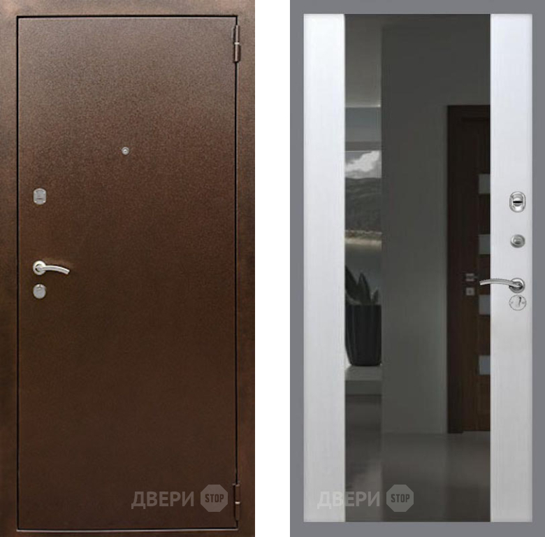 Входная Дверь Рекс (REX) 1А Медный Антик СБ-16 с Зеркалом Лиственница беж 860x2050 мм