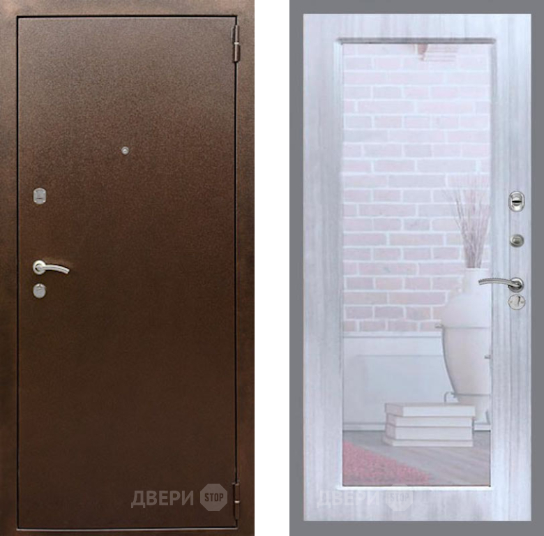 Входная Дверь Рекс (REX) 1А Медный Антик Зеркало Пастораль Сандал белый 860x2050 мм