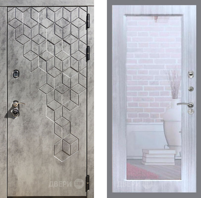 Входная Дверь Рекс (REX) 23 Зеркало Пастораль Сандал белый 860x2050 мм