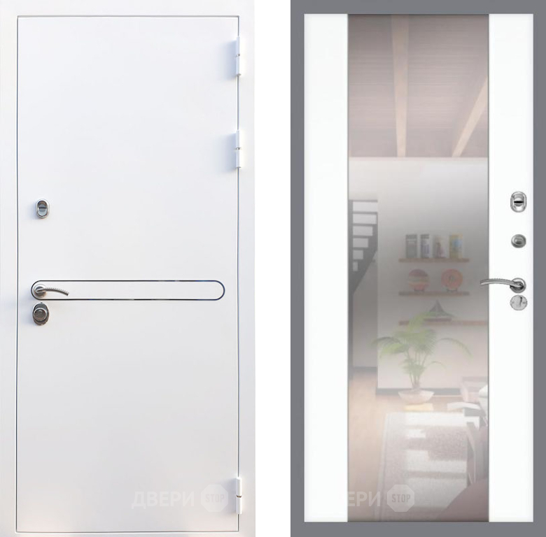 Входная Дверь Рекс (REX) 27 СБ-16 Зеркало Силк Сноу 860x2050 мм