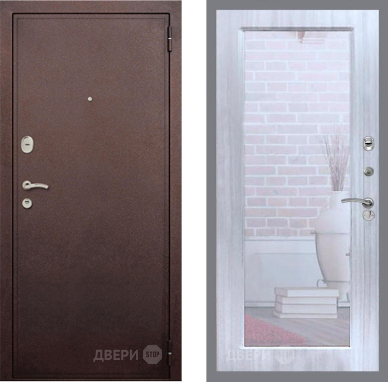 Входная Дверь Рекс (REX) 2 Медный Антик Зеркало Пастораль Сандал белый 960x2050 мм