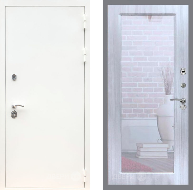Входная Дверь Рекс (REX) 5 Белая Шагрень Зеркало Пастораль Сандал белый 860x2050 мм