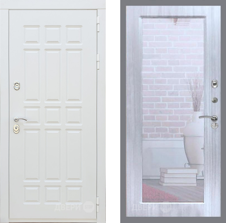Входная Дверь Рекс (REX) 8 Силк Сноу Зеркало Пастораль Сандал белый 860x2050 мм
