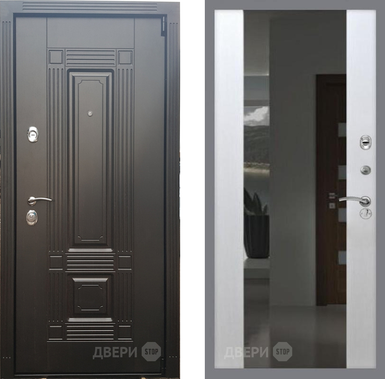 Входная Дверь Рекс (REX) 9 СБ-16 с Зеркалом Лиственница беж 860x2050 мм