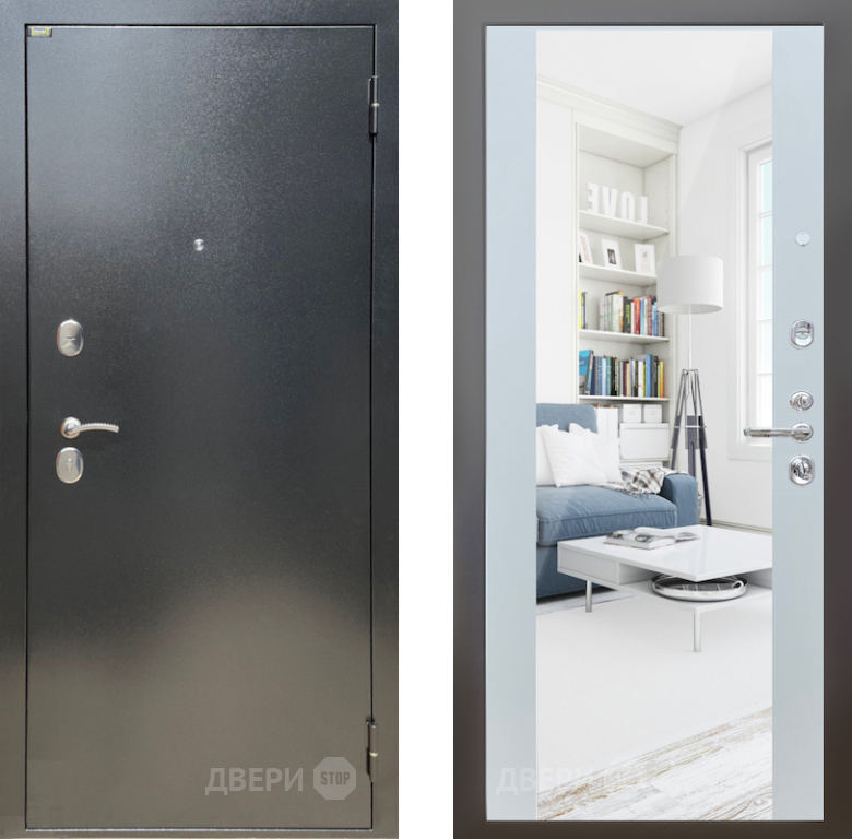 Входная Дверь Шелтер (SHELTER) Стандарт 13 с зеркалом Белый матовый 860x2050 мм