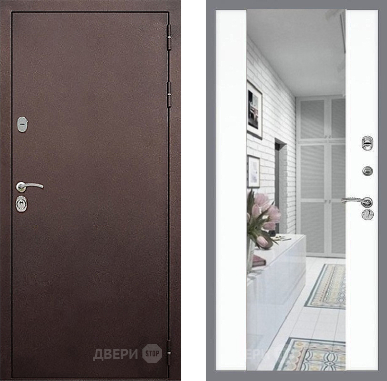 Входная Дверь Стоп КЛАССИК Медь Зеркало СБ-16 Силк Сноу 860x2050 мм
