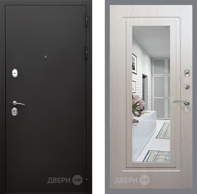 Входная Дверь Стоп КЛАССИК Шагрень Зеркало ФЛ-120 Беленый дуб 860x2050 мм