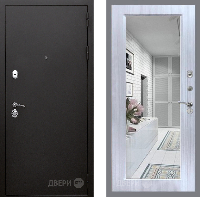 Входная Дверь Стоп КЛАССИК Шагрень Зеркало Сандал белый 860x2050 мм