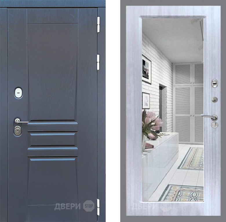 Входная Дверь Стоп ПЛАТИНУМ Зеркало Сандал белый 860x2050 мм
